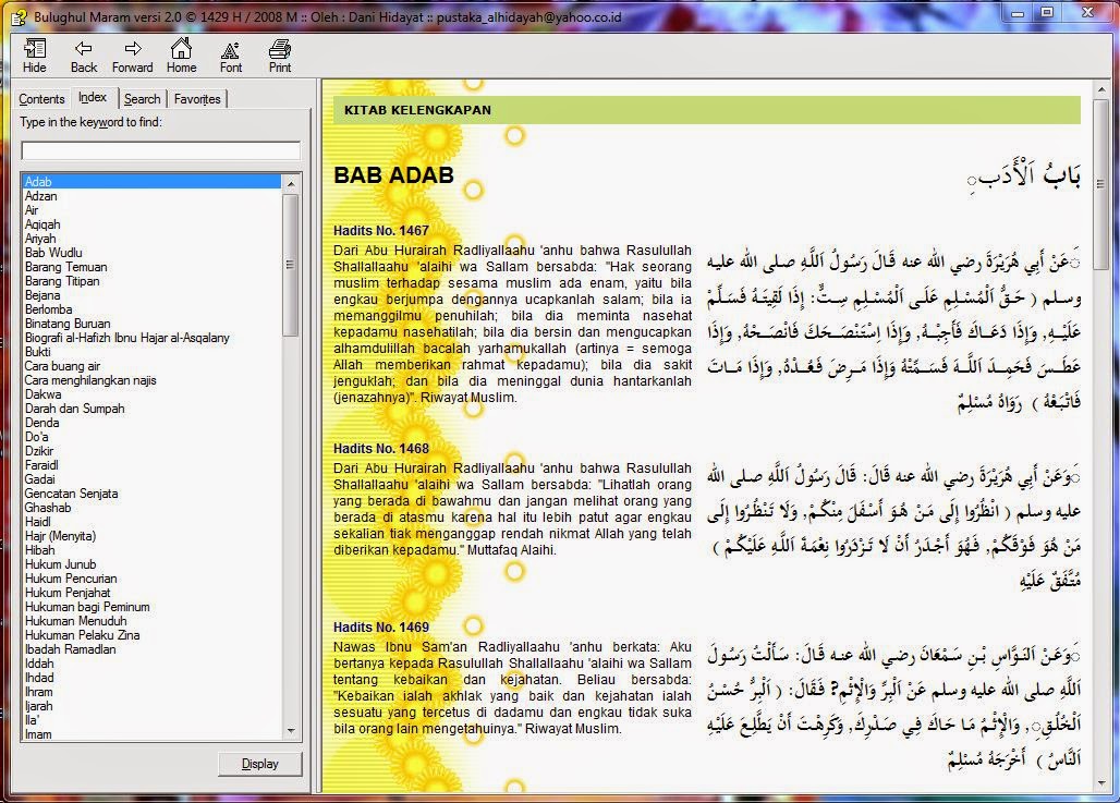 Compilation of hadiths by 9 books (Shahih Bukhari, Shahih Muslim, Sunan Abu Daud, etc), completed with the collection of hadiths related to Al-Qur'an, Qudsi, and Mutawatir. Compilation of hadiths by 9 books (Shahih Bukhari, Shahih Muslim, Sunan Abu Daud, etc), completed with the collection of hadiths related to Al-Qur'an, Qudsi, and Mutawatir. Full Specifications What's new in version 3.9.10- Solusi untuk perangkat yang tidak mendapatkan hadits harian- Update berkala terjemah bahasa Indonesia- Comply untuk Android OreoIn syaa Allah kami akan secara berkala merelease update untuk meningkatkan kenyamanan dan performansi aplikasi serta solusi atas bug yang ada. Mohon berkenan untuk selalu update ke versi terbaru.GeneralPublisherPublisher web siteRelease DateNovember 09, 2018Date AddedNovember 09, 2018Version3.9.10CategoryCategorySubcategoryOperating SystemsOperating SystemsAndroidAdditional RequirementsNoneDownload InformationFile SizeNot AvailableFile NameExternal FilePopularityTotal Downloads157Downloads Last Week1PricingLicense ModelFreeLimitationsNot availablePriceFree.